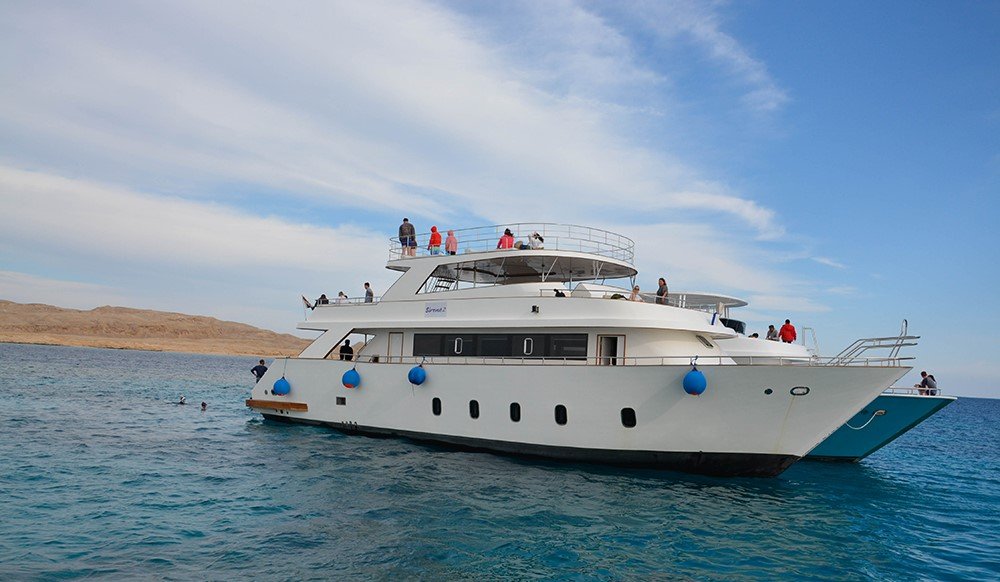 Kreuzen Sie an Bord einer komfortablen Yacht oder eines Schnellboots über das Rote Meer – komplette Schnorchelausrüstung wird gestellt.