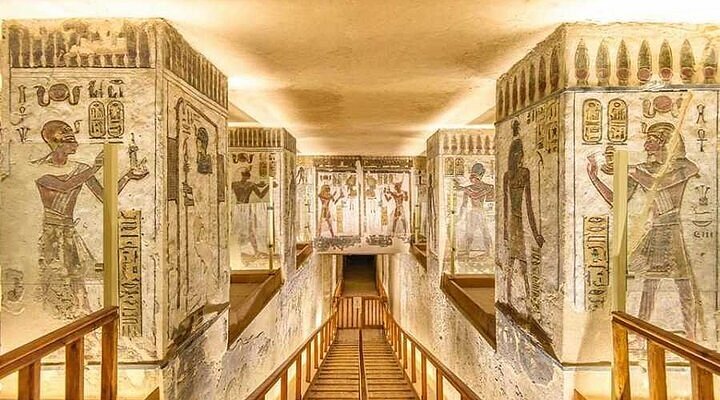Geführte Tour durch das legendäre Tal der Könige. Erkunden Sie drei Königsgräber, die mit Hieroglyphen und lebendigen Szenen aus dem Jenseits verziert sind. (Optional: Eintritt in Tutanchamuns Grab gegen Aufpreis.)