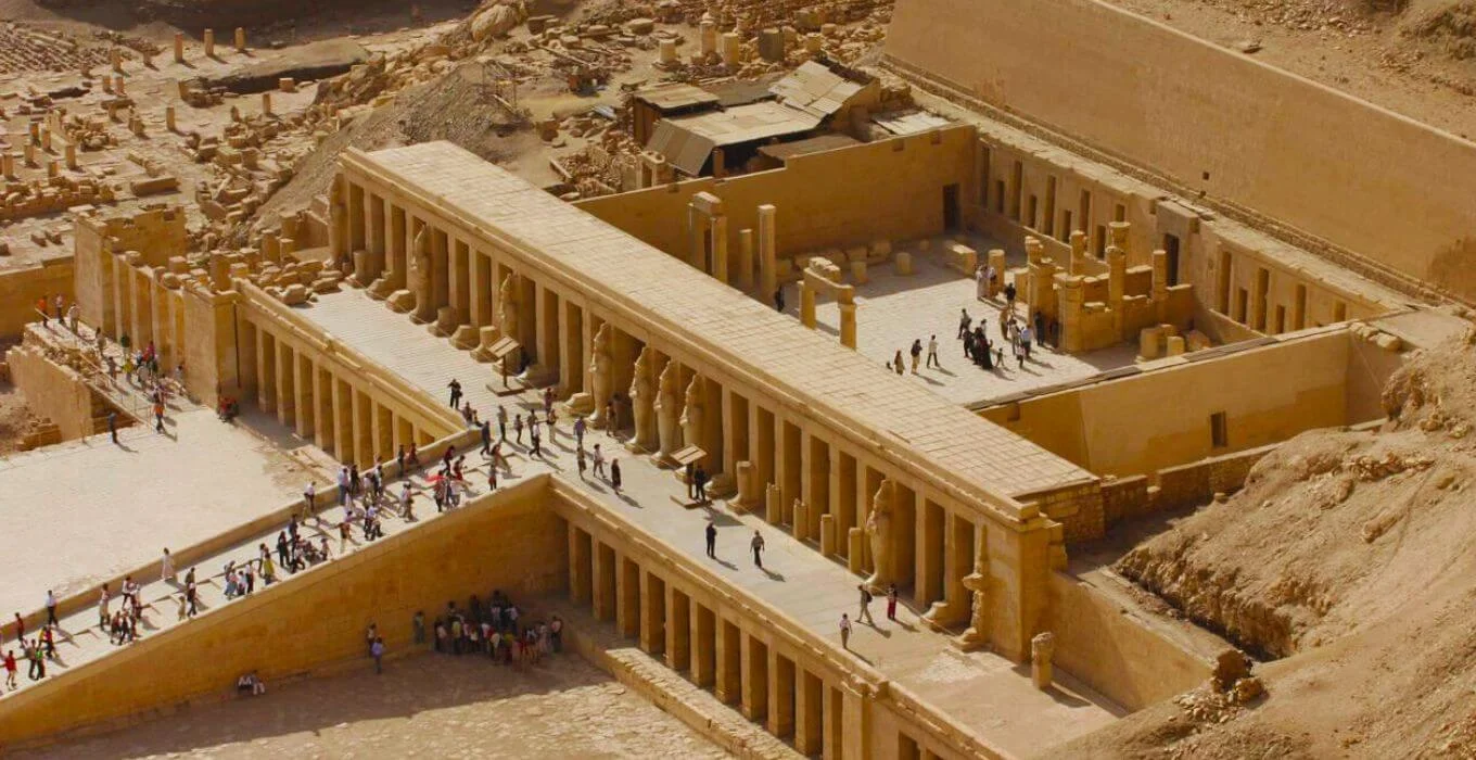Admirez le temple funéraire de la reine Hatchepsout, la plus célèbre pharaonne d’Égypte, niché au pied de falaises calcaires. Découvrez son règne et l’architecture unique de ce chef-d’œuvre.
